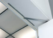 位于上方的闭门器适用于门扇宽度不超过 1250 mm 的无障碍、易开启单扇门(闭门力 EN5),可安装在合页异侧的门扇上。