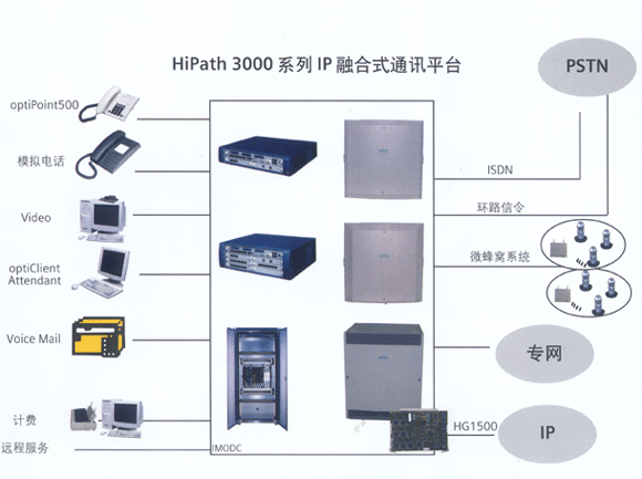 • HIPATH 3750 基于欧洲ISDN技术(DSS1)提供**优的,多种多样的数字/模拟的中继和用户线路接口